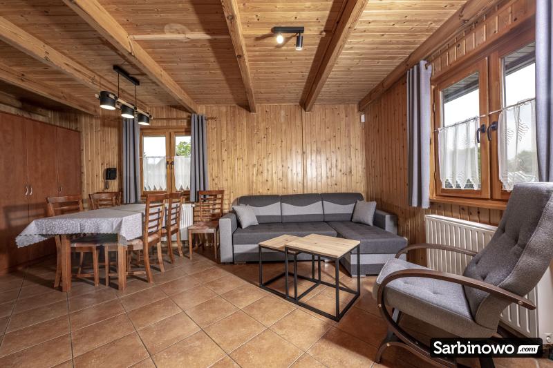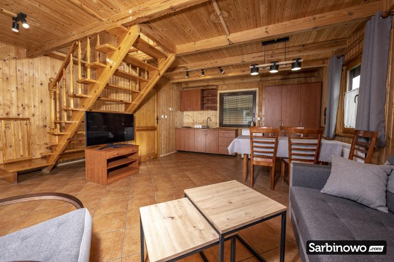 ✔ Domki letniskowe dla maks. 6 osób – z aneksem kuchennym, łazienką i tarasem (wynajem bez wyżywienia lub z wyżywieniem)
